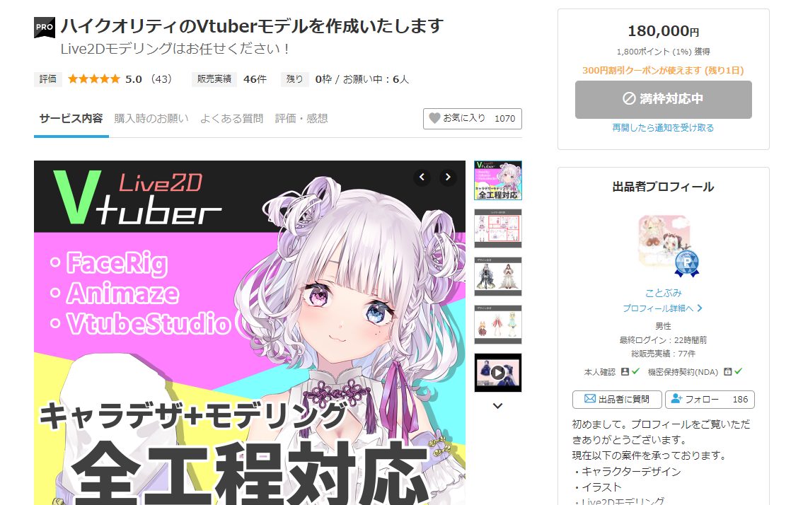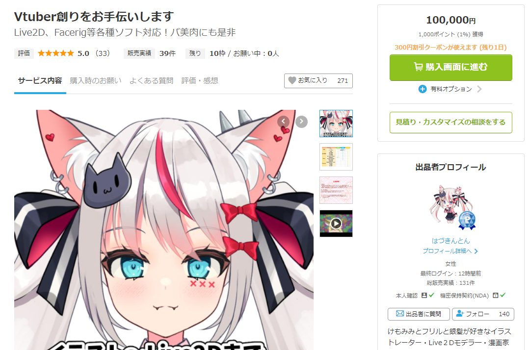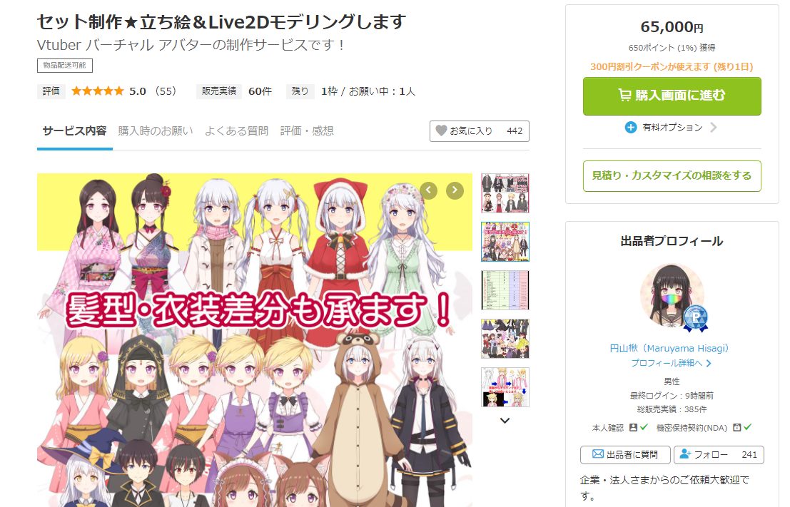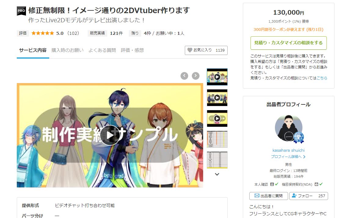 他にもココナラ では、たくさんのモデラーさんが2Dモデル(アバター)の制作依頼を受け付けています。