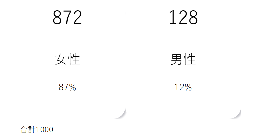 vtuber postのVTuber人気ランキング(2022年8月時点の)でグループや企業公式チャンネルを除いた上位1000人の性別を確認しました。